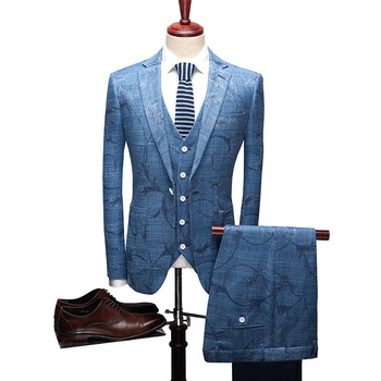 Los más nuevos fabricantes OEM nuevo diseño abrigo pantalón hombres tres piezas traje azul real trajes de esmoquin negro